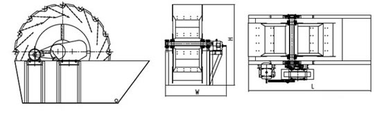 洗砂机的简介: 洗砂机又叫(洗沙机)广泛用于砂石场、矿山、建材、交通、化工、水利水电、混凝土搅拌站等行业中对物料的洗选、分级和脱水。我公司生产的洗砂机是配合制砂机使用的一种水洗式制砂的必备设备,它可以洗去制砂机制出的混合砂子微量的石粉和杂质,从而提高砂子的质量。高效洗砂机具有洗净高度,结构合理,产量大,洗砂过程中砂子流失少,尤其是其传动部分均与水、砂隔离,故该洗砂机故障率大大低于目前常用洗砂机,是国内洗砂行业升级换代的最佳选择。 洗砂机的工作原理: 洗砂机工作时,电机通过三角带、减速机、齿轮减速后带动叶轮缓慢转动,砂石有给料槽进入洗槽中,在叶轮的带动下翻滚,并互相研磨,除去覆盖砂石表面的杂质,同时破坏包覆砂粒的水汽层,以利于脱水;同时加水,形成强大水流,及时将杂质及比重小的异物带走,并从溢出口洗槽排出,完成清洗作用。干净的砂石由叶片带走,最后砂石从旋转的叶轮倒入出料槽,完成砂石的清洗作用. 洗砂机的特点: 1.轮斗式洗砂机结构简朴,叶轮传动轴承装置与水和受水物料隔离大大避免了轴承因浸水、砂和污染物导致损坏的现象发生。 2.洗砂机(洗沙机)用于砂石场洗砂时与传统的螺旋洗砂机比拟有显著上风如下: a.细砂和石粉流失极少,所洗建筑砂级配和细度模数达到国家《建筑用砂》《建筑用卵石、碎石》尺度。 b.轮斗式洗砂机除筛网外几乎无易损件。 c.用寿命长,长期不用维修。 3.洗砂机机结构公道、维修便利、处理量大、功率消耗小、洗净度高。新奇的密封结构、全封锁油浴式传动装置、可调式溢流堰板,确保了该系列产品高效、耐用,清洗、脱水效果好,细粒产品保持不乱等特点。 洗砂机的结构: 洗砂机是由齿轮,减速器,支架,沉淀槽,叶轮,皮带轮,电机等重要部分组成。